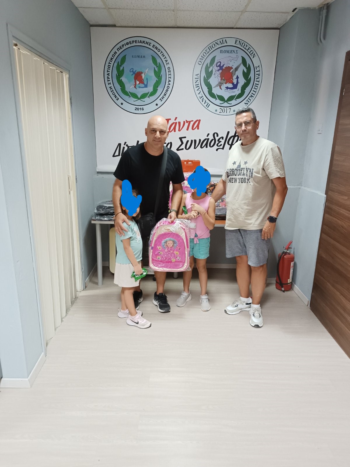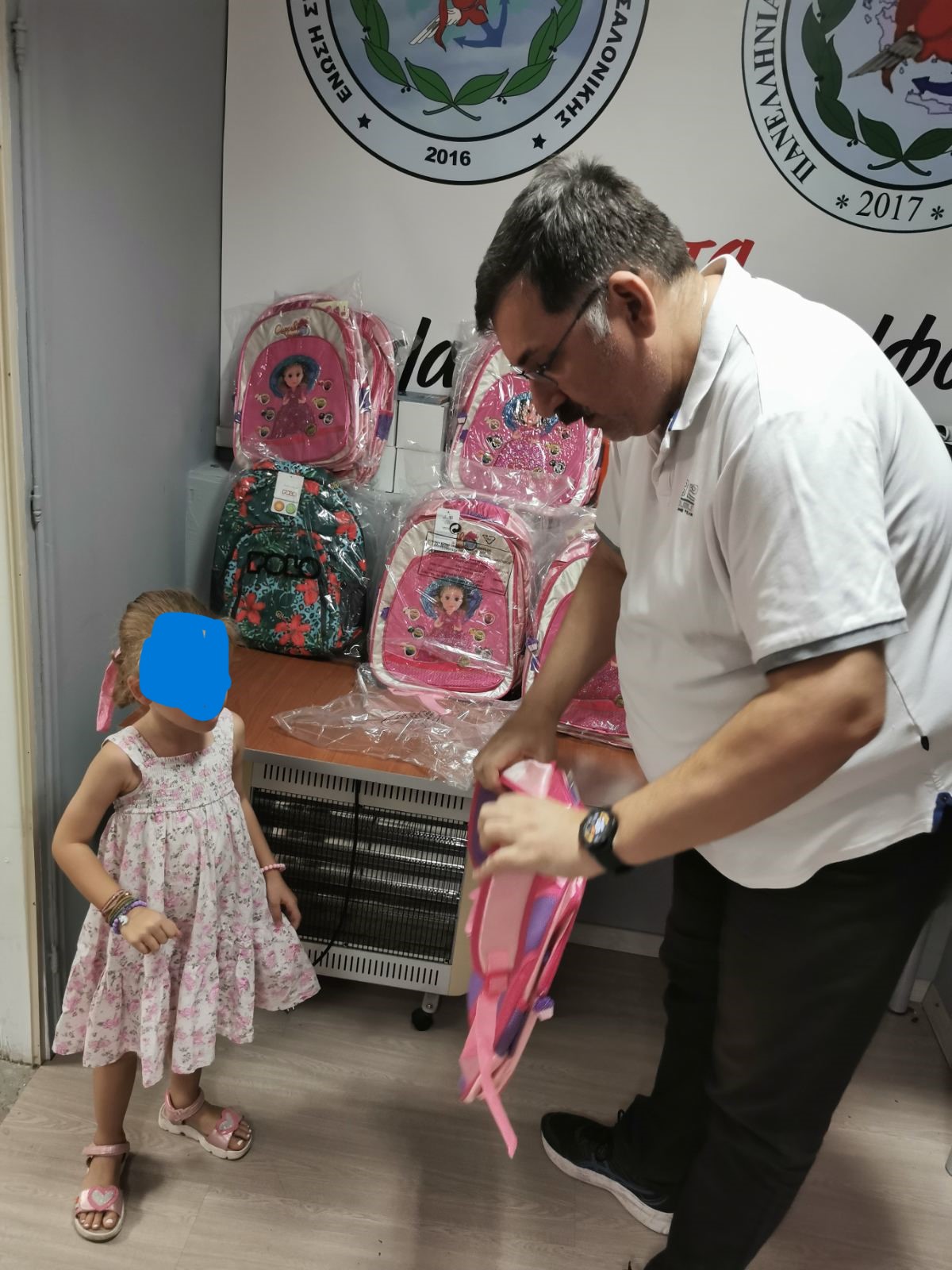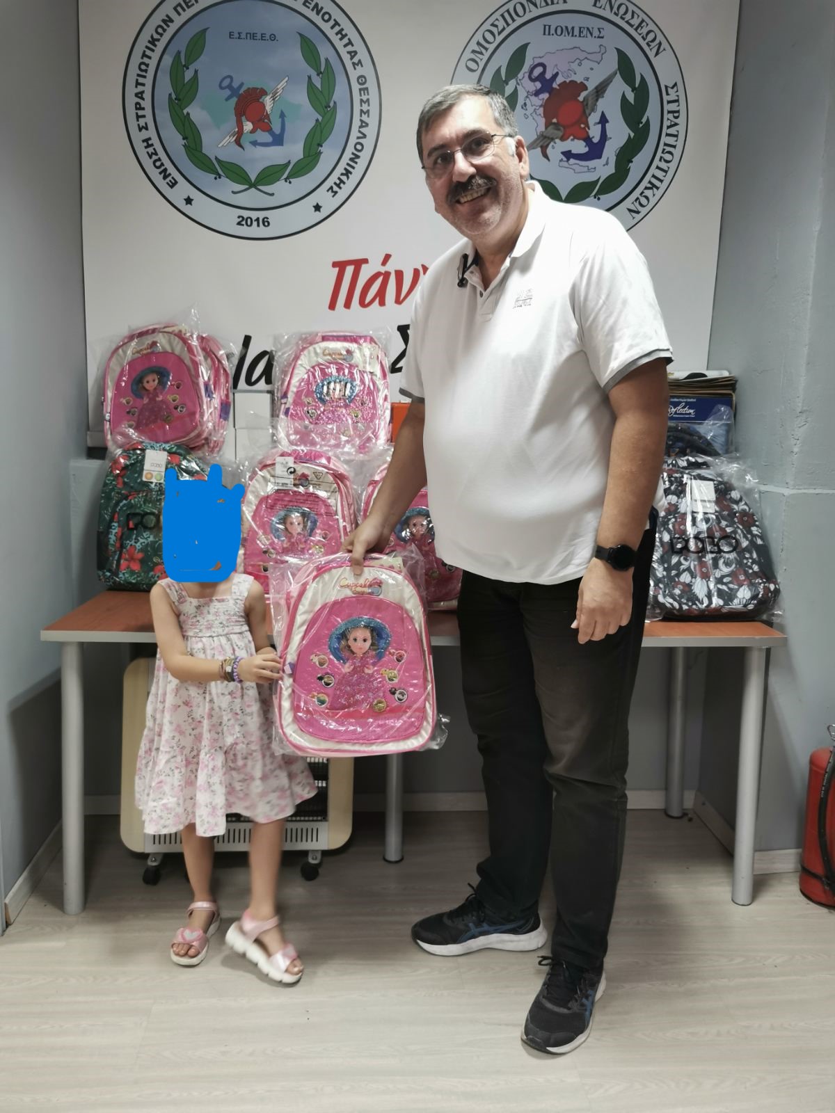 Η Ε.Σ.ΠΕ.Ε. Θεσσαλονίκης για τέταρτη χρόνια μετά απόφαση του Διοικητικού Συμβουλίου δώρισε σχολικές τσάντες στα παιδιά των μελών της που θα φοιτήσουν στην Α Δημοτικού , φέτος δόθηκαν συνολικά 75 τσάντες .