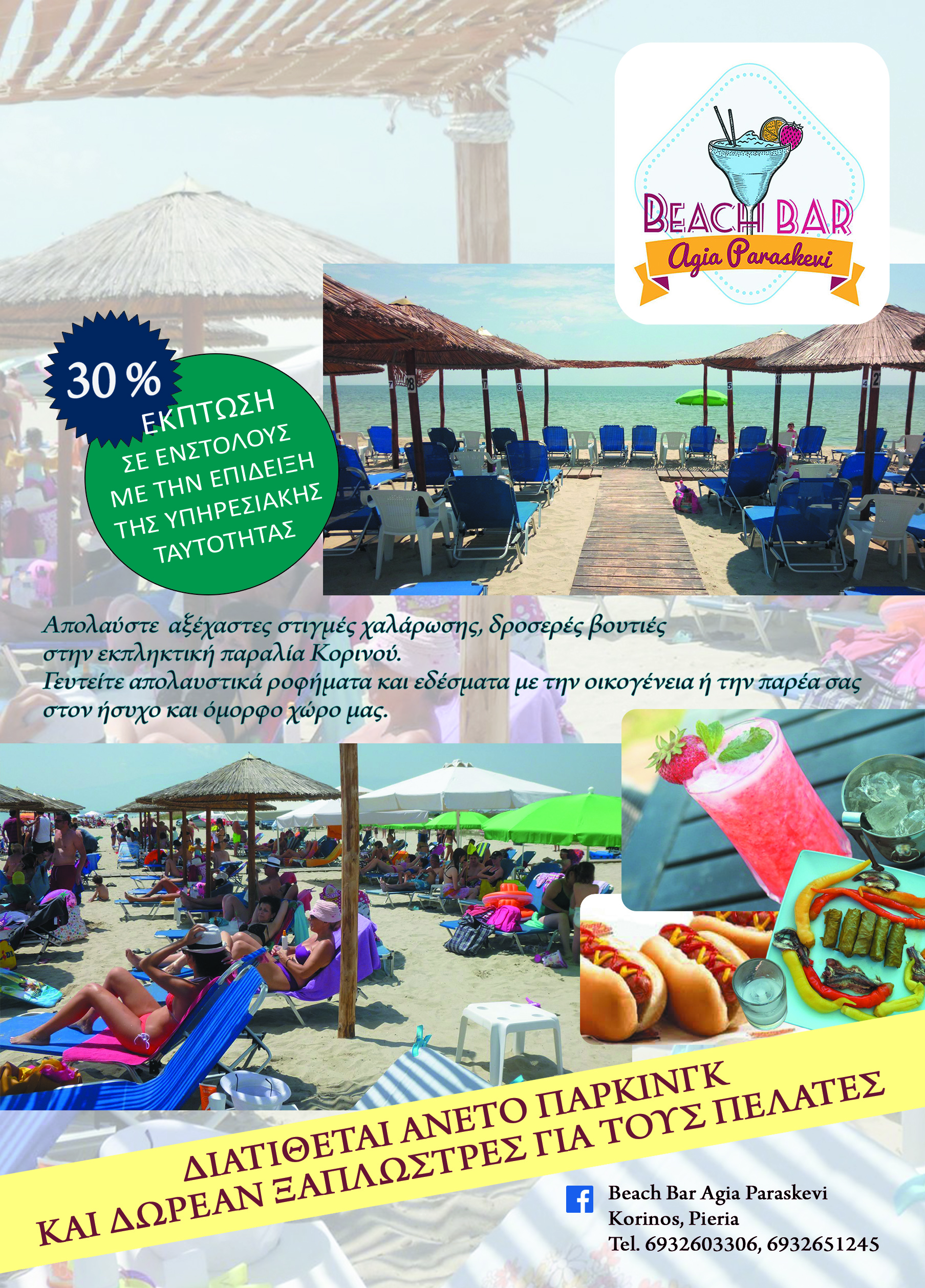 ΠΡΟΣΦΟΡΑ BEACH BAR ΑΓΙΑ ΠΑΡΑΣΚΕΥΗ ΚΟΡΙΝΟΣ ΠΙΕΡΙΑΣ