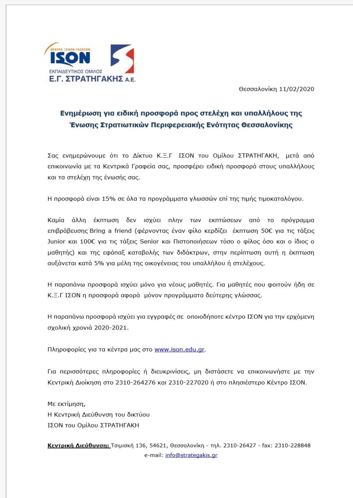 ΠΡΟΣΦΟΡΑ ΑΠΟ ΕΚΠΑΙΔΕΥΤΙΚΟ ΟΜΙΛΟ ΣΤΡΑΤΗΓΑΚΗ