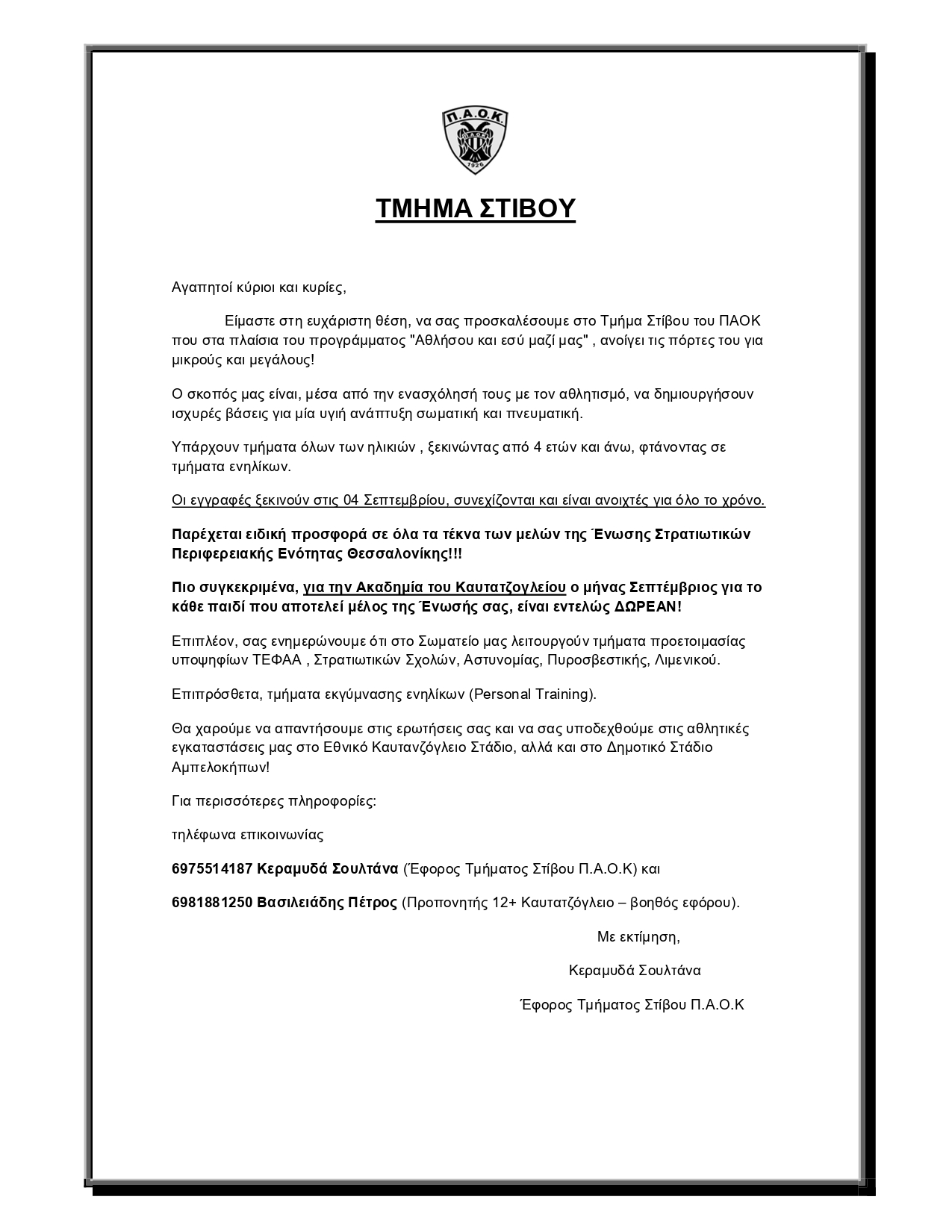 ΠΡΟΣΦΟΡΑ ΤΜΗΜΑ ΣΤΙΒΟΥ ΠΑΟΚ